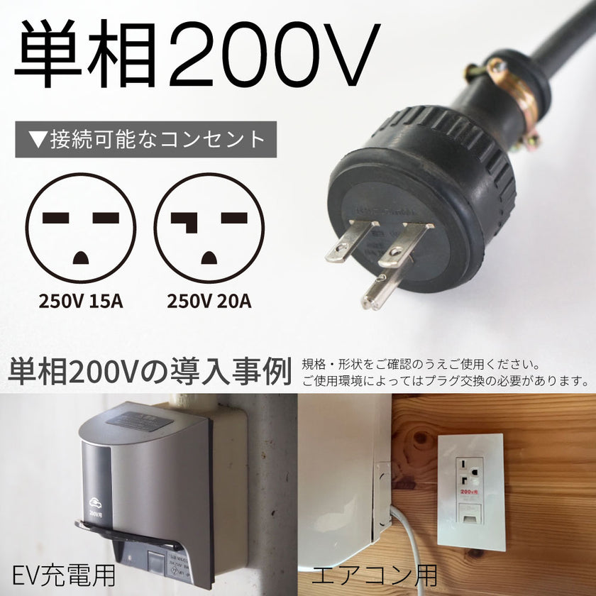 ・宅内配線は200V対応であること、2.0sq以上(推奨3.5sq)をご使用ください。