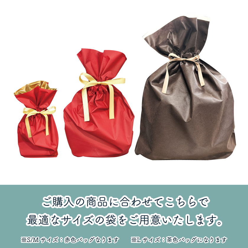 ※ご購入商品が袋に入り切らない場合や商品自体が大きすぎる商品の場合は画像と異なる梱包もしくは、ラッピング資材を同封させていただきます。同封の場合はお手数ですが、ご自身にてラッピングをお願いいたします。