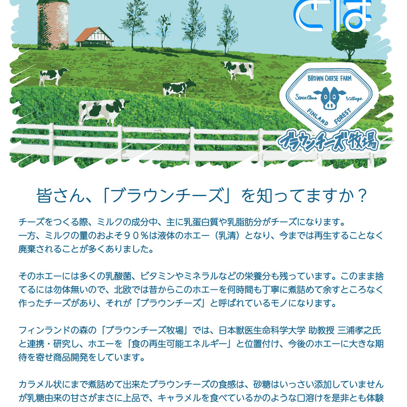 このケーキは『フィンランドの森チーズ工房のブラウンチーズを使って美味しいケーキが作りたい』という、夢から生まれました。